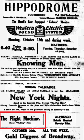 - In 1930, the film was advertised as part of a programme of films shown at the Hippodrome in Todmorden, West Yorkshire.
